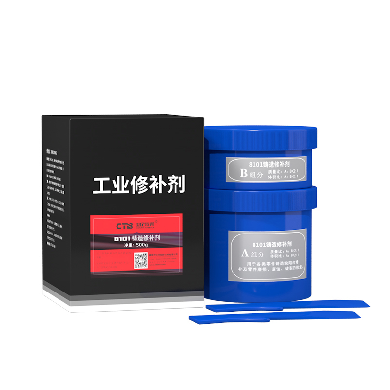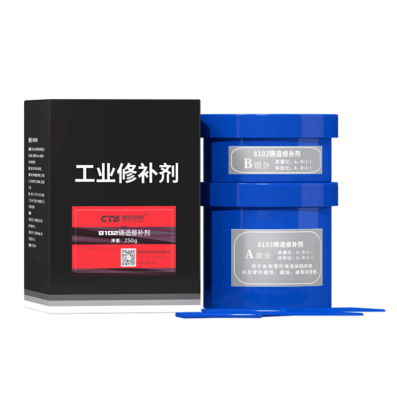 雙組份,鑄鐵色,泥狀是由多種合金材料和改性增韌耐熱樹脂進行復合得到的高性能聚合金屬材料固化后硬度高、無收縮,顏色與基件保持一致,可進行各類機械加工具有耐磨、耐老化、耐油、防水、耐腐蝕、耐高溫。用于鑄鐵件氣孔、砂眼、縮孔裂紋等鑄造缺陷的修復及鑄鐵零件磨損、劃傷、腐蝕、破裂的修復,也可用于管件漏油、漏水密封。