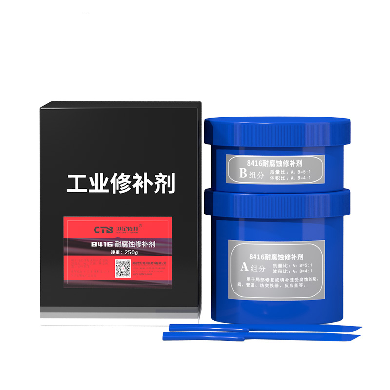 雙組分,灰色,是由各類高性能耐磨、抗蝕材料(如陶瓷、碳化硅、金剛砂、鈦合金)與改性增韌耐熱樹脂進(jìn)行復(fù)合得到的高性能耐磨抗蝕聚合陶瓷材料。 修補(bǔ)各類遭受常溫腐蝕的泵、閥、管路、熱交換器端板、葉片等并可進(jìn)行大面積預(yù)保護(hù)。